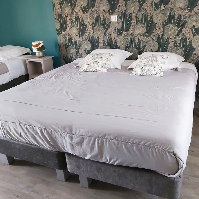 - Lit : 1 lit king size 180 × 200 cm (séparable en 2 lits 90 × 200 cm) + 1 lit 90 × 200 cm